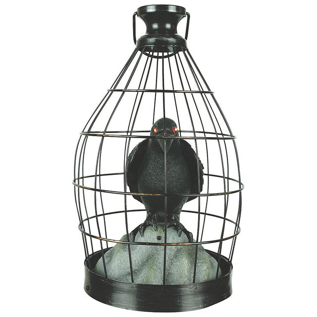 Animated Crow In Cage Halloween Prop