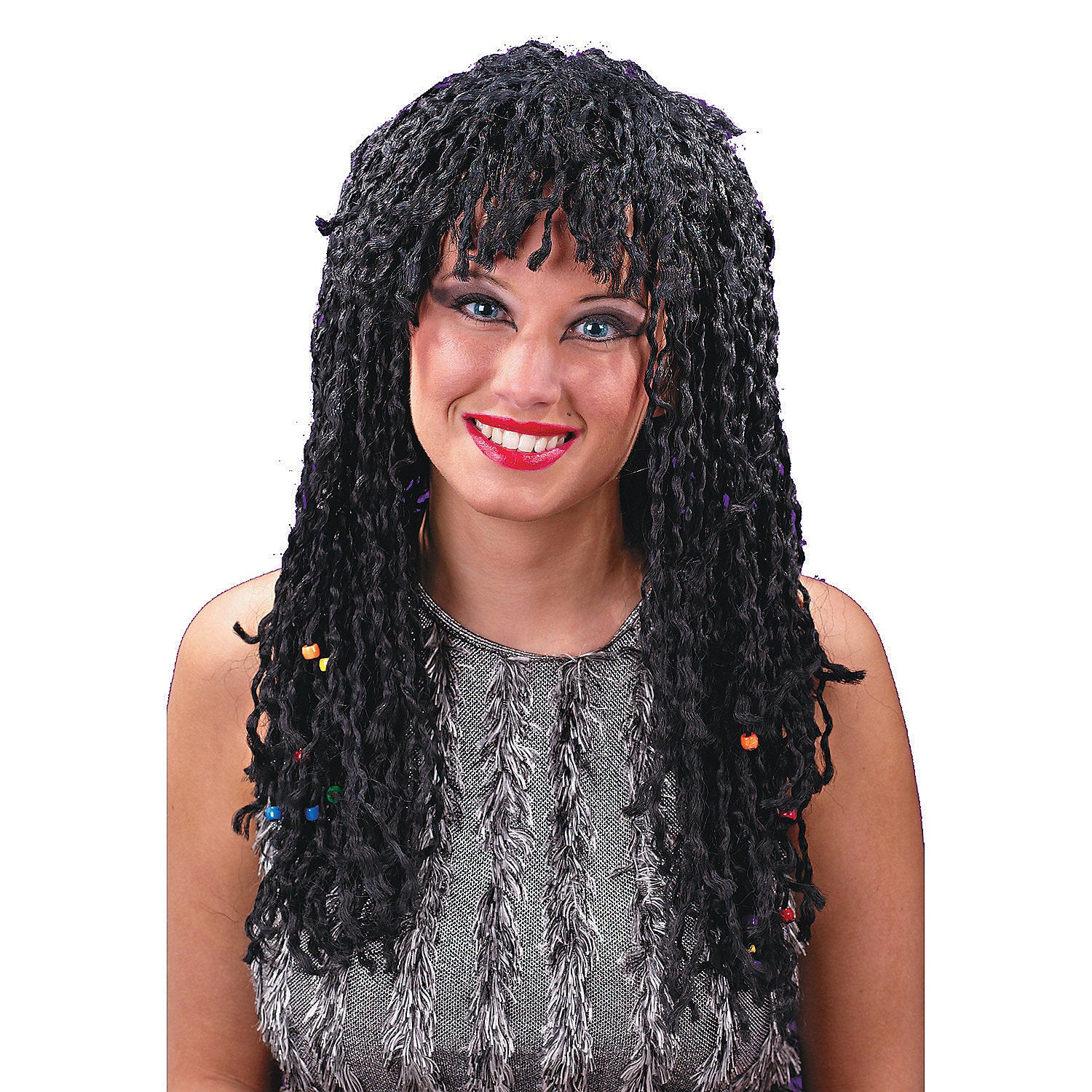 This beaded twist wig is a fantastic addition to your costume collection! Perfectly designed for Halloween, it complements hippie, reggae, and rock looks with ease. Made in the USA, this adult wig features 20-inch long curls adorned with colorful beads, ensuring you stand out at any costume event.