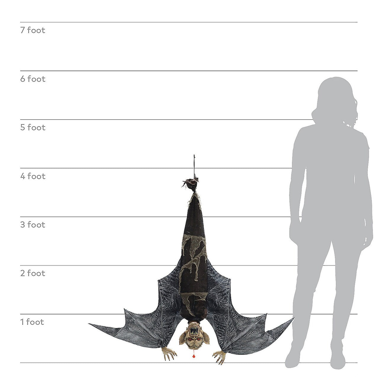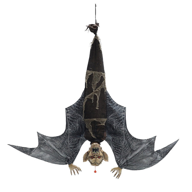 46" Menacing Hanging Bat Prop LED Eyes, Screeching Sounds, Moving Wings, Battery Operated Halloween Decor