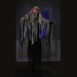 Your soul is mine!” This 72-inch Hanging Reaper brings spine-chilling terror to your Halloween setup. With glowing red LED eyes, posable arms, and a haunting voice that repeats his ominous phrase, this ghostly figure is perfect for porches, trees, and haunted houses. His tattered gray robes blow eerily in the wind, completing the reaper’s haunting look. Easy to hang and activate, he’s sure to become the centerpiece of your fright night.