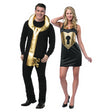 The perfect costume for couples when he really has the key to your heart! This costume features a gold lame cloth-covered foam key for the man to wear around his neck, paired with a black tank dress that has a printed golden heart locket. Both pieces come in one bag. Just add your black pants and shirt for a complete look. Dress fits women sizes 4-10, while the men's key is designed to fit most.