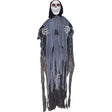 Our spooky Hanging Ghost Skeleton in Chains will create an eerie vibe in your haunted Halloween decor! His skull head and posable arms with hanging chains move, his eyes light-up with a fiendish red color, and he cries, "Let me out!". Measures 60 in tall x 40 wide x 7 deep.