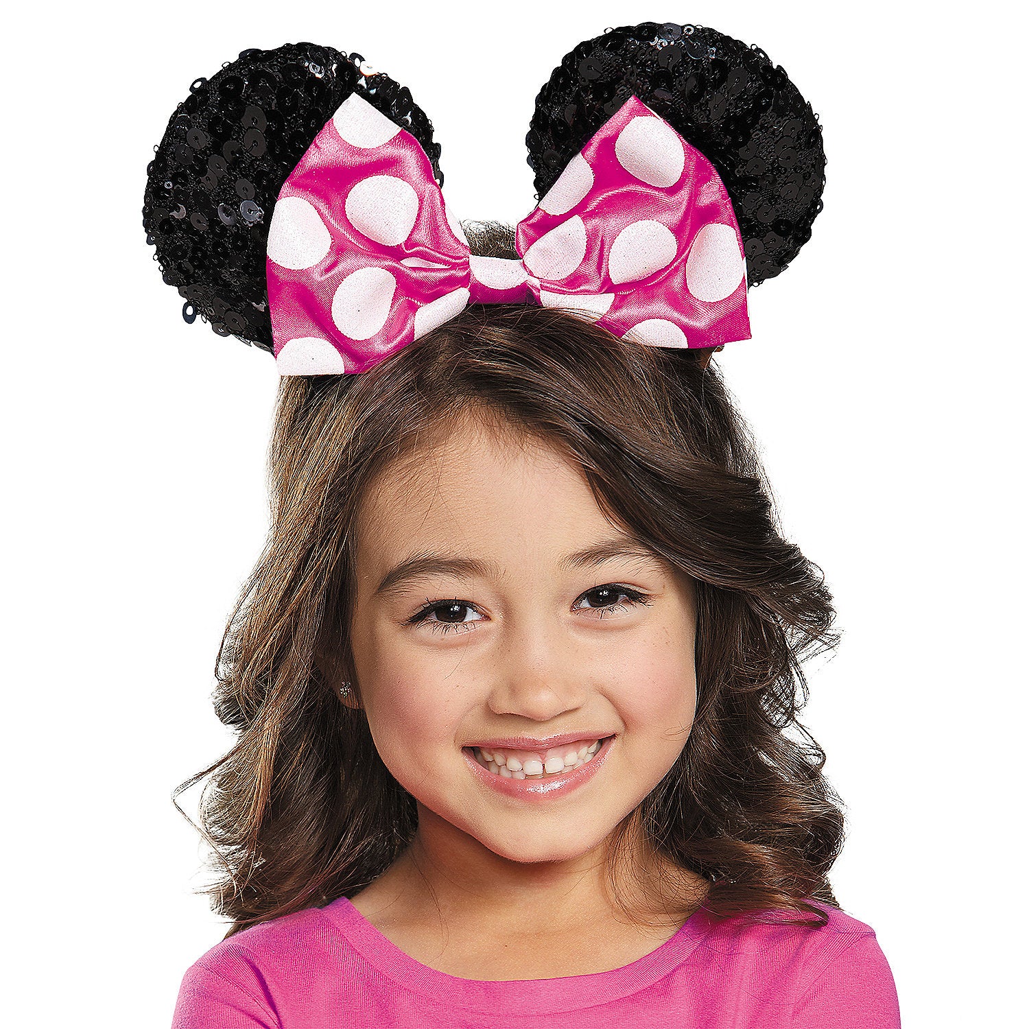 Adorable Girl's Pink Minnie Mouse Ears for Halloween Costume Theme Parties and Dress-Up Events