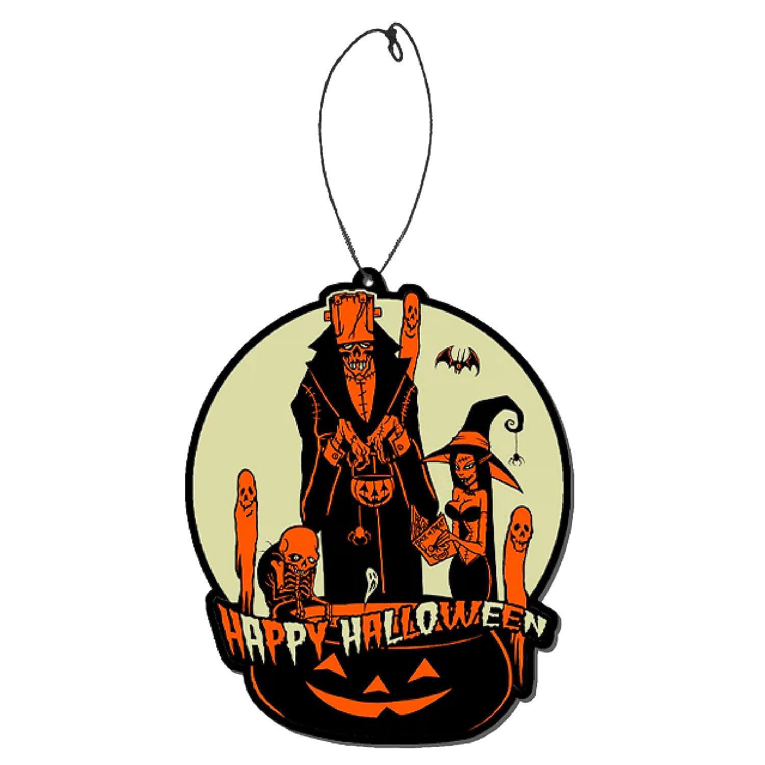 Showcase your love for Halloween with the 3 1/2 Toxictoons Happy Halloween Vanilla Fear Freshener. This vibrant air freshener not only brings delightful fragrances into your space but also showcases your fandom. Featuring an elastic band, it can be easily attached to any area that needs a refresh.