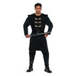 Great simple look with a dashing effect for Halloween, cosplay, or historical events! Our Medieval Knight Adult Costume has a damask-printed black tunic with wide shoulder detail and 3 attached decorative braided frog chest accents, and comes with matching pants and a black belt.