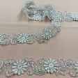1 Yard Beaded & Corded Lace Trimming Embroidered on 100% Polyester Organza 2 Inches Wide
