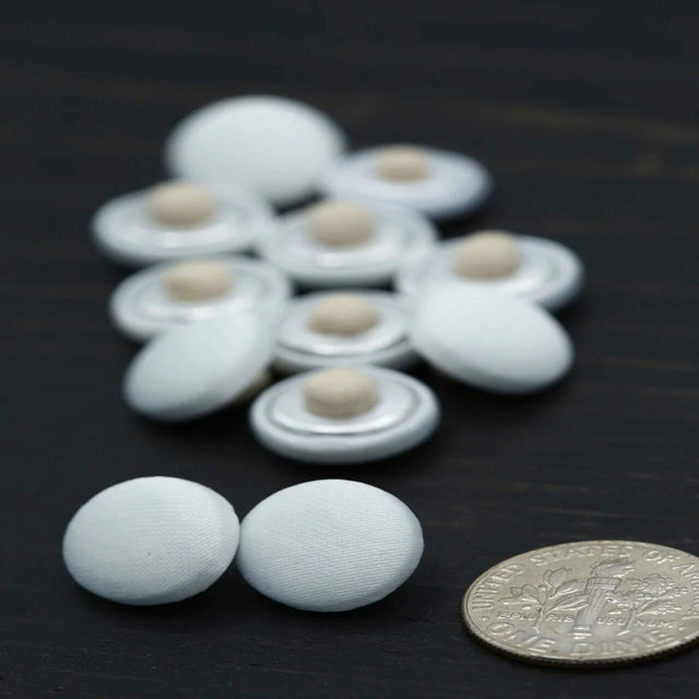 Add a classic, elegant touch to wedding gowns, veils, or bridal accessories with this 1 dozen set of bridal buttons. Each button is backed with sturdy canvas for easy sewing and a secure fit. Available in 12.5mm 20L 1/2", these timeless buttons are perfect for dressmaking, alterations, or bridal DIY projects.