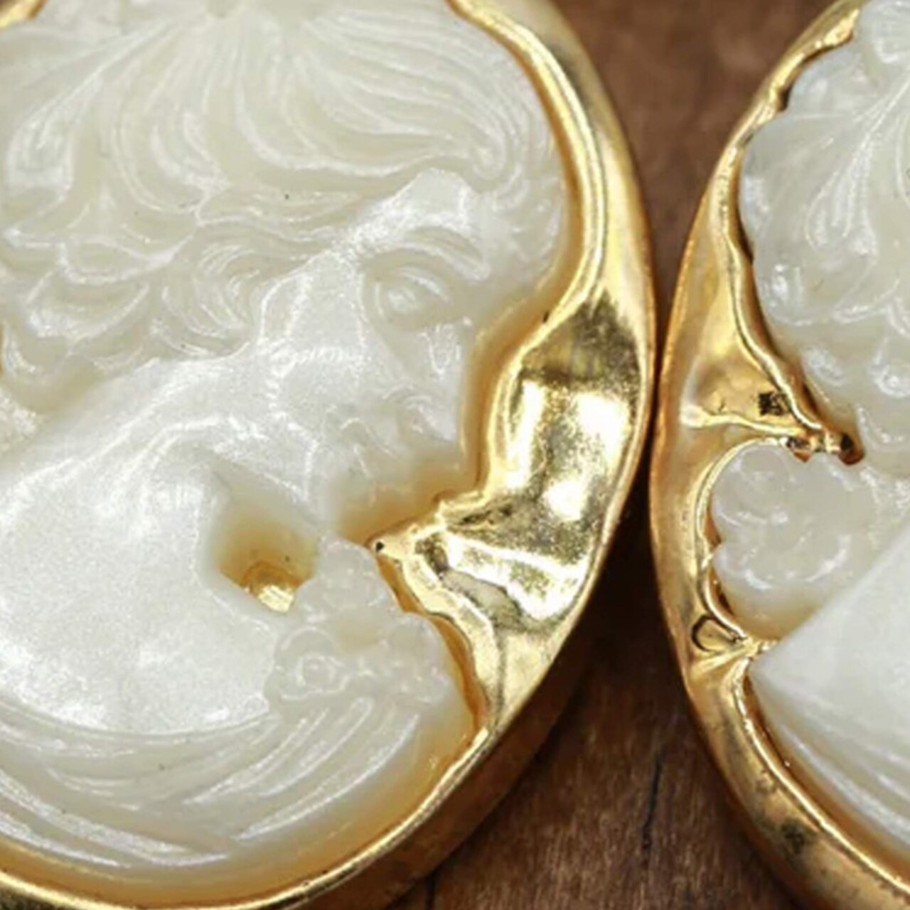 1 Pc Gold Ivory Female Face Cameo Button Plastic