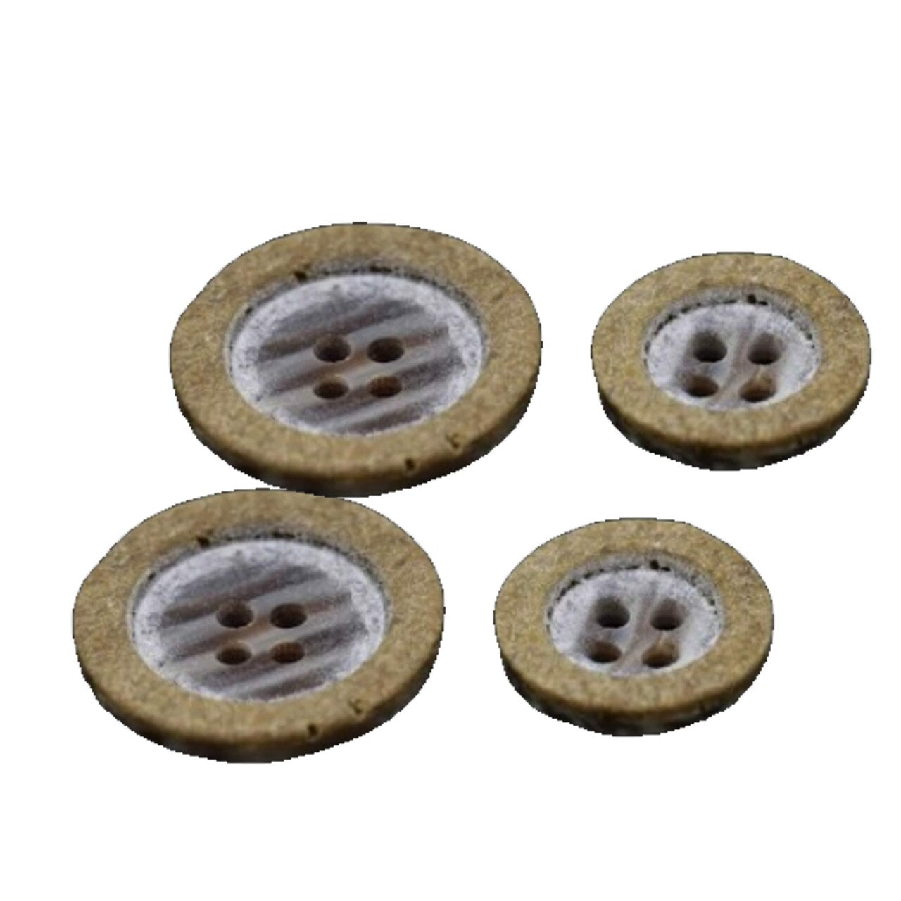 These small 15mm faux wood plastic buttons offer a natural wood look with the durability of plastic, perfect for a variety of sewing and craft projects. Featuring a sanded finish and a secure four-hole design, these multipurpose buttons are ideal for garments, accessories, and DIY creations.