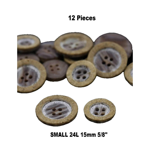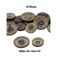 12 Small Faux Wood Plastic Buttons – 24L (15mm / 5/8") Sanded Four-Hole Multipurpose Buttons