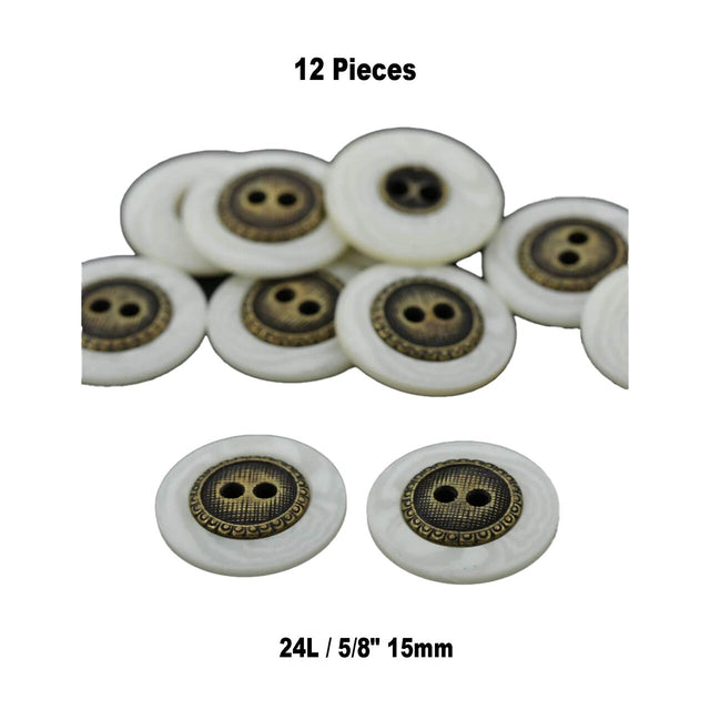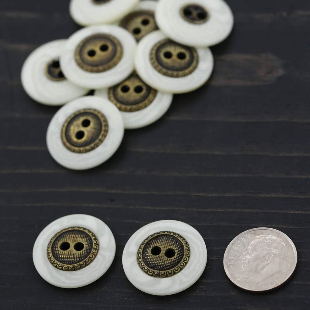 12 Pieces Ivory and Bronze Small Buttons 5/8 Inch