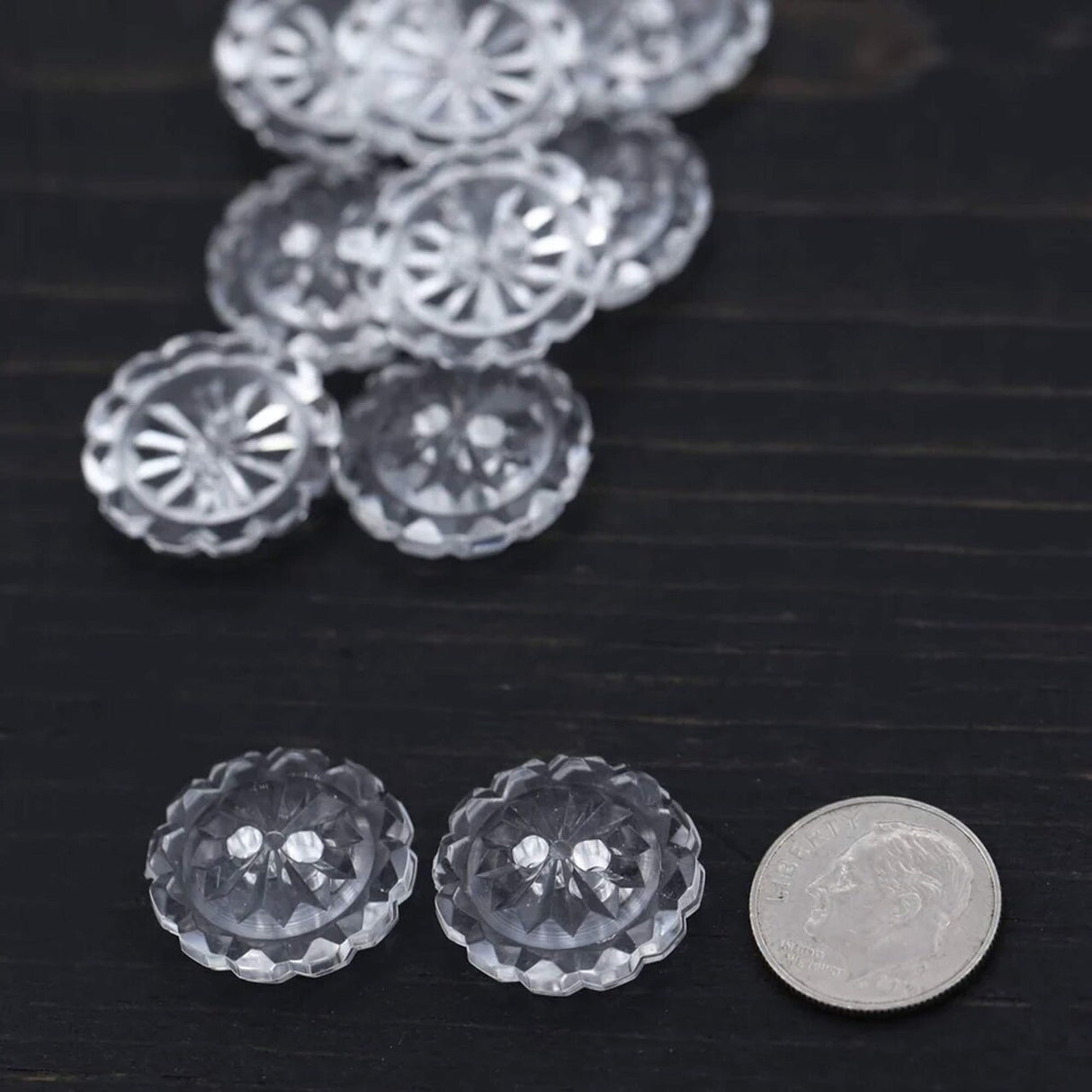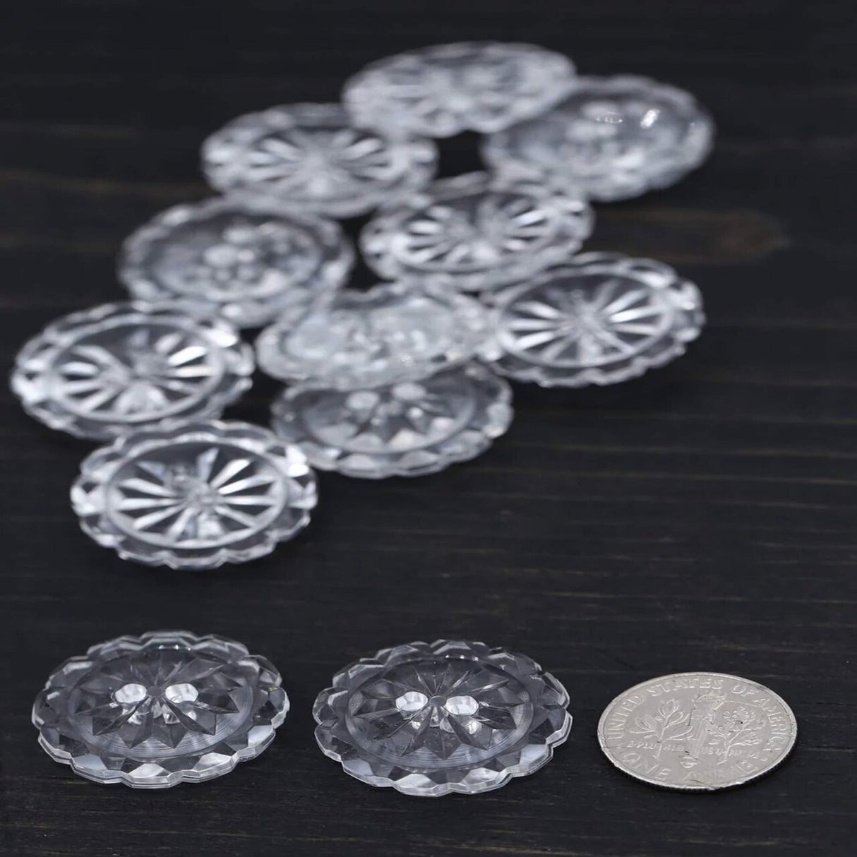 12 Pieces Clear Crystal Cut Buttons Medium 3/4 Inch