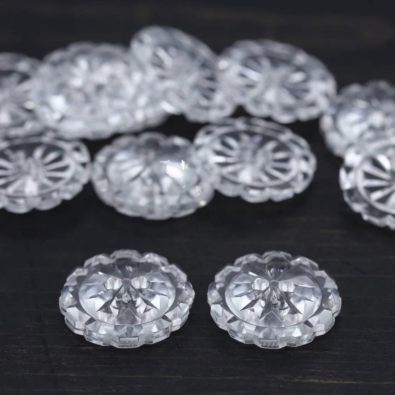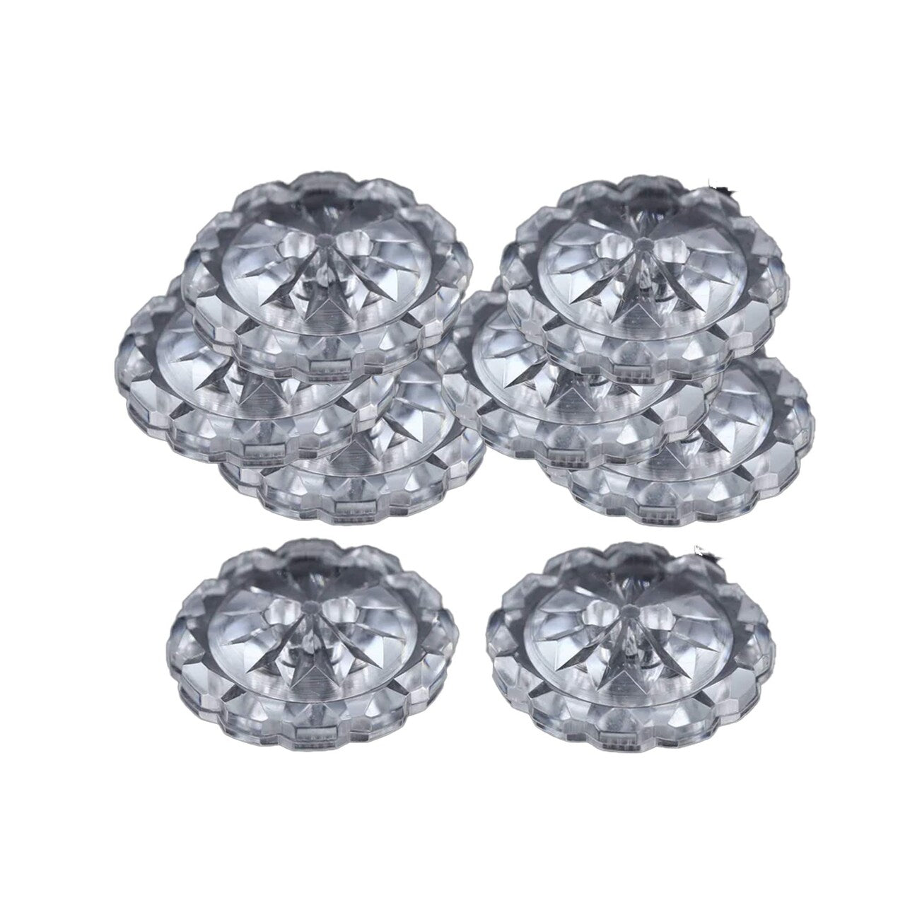 Add elegance and shine to your sewing or craft projects with these Clear Crystal Cut Plastic Buttons. Designed with a faceted, gem-like appearance, these medium-sized buttons are ideal for shirts, blouses, accessories, or DIY projects needing a polished finish.