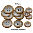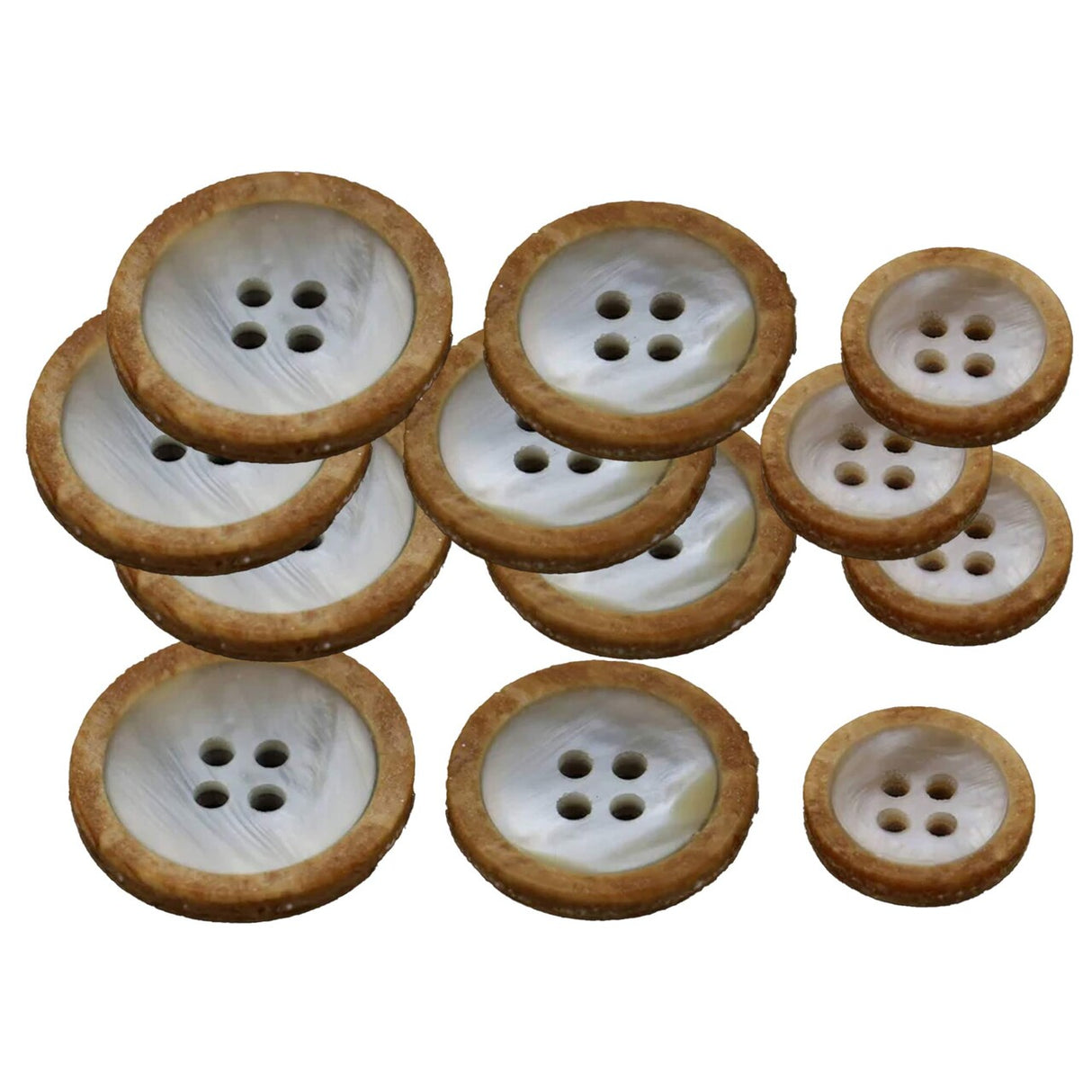 12 Faux Shell with Outer Faux Wood Button 20mm (13/16") Medium Size 4-Hole Shirt Button