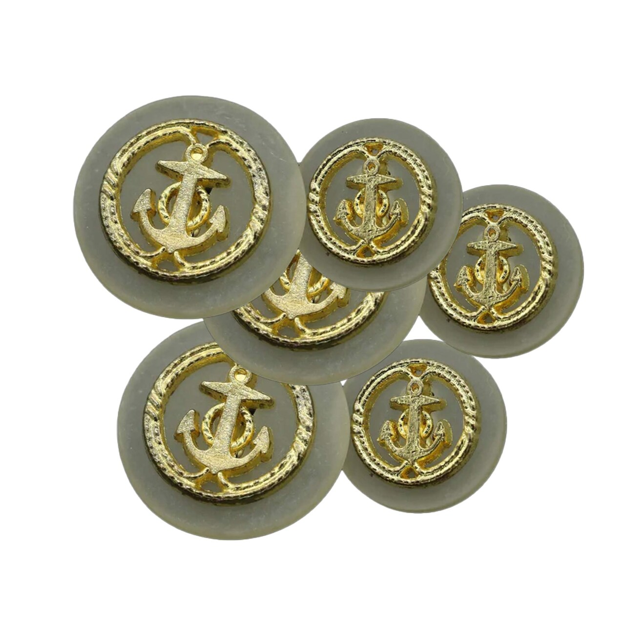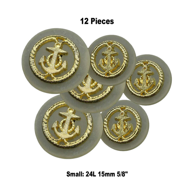 12 Pieces Gold Anchor on Ivory Base Buttons Small 5/8 Inch