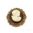 This elegant flat-back plastic cameo showcases a raised ivory silhouette of a woman set against a shimmering silver background. Framed in a classic antique brass finish, it brings a refined, vintage charm to any creative project. Perfect for embellishing invitations, gift boxes, or party favors, this lightweight piece adheres easily to most surfaces and adds a touch of sophistication to your décor.
