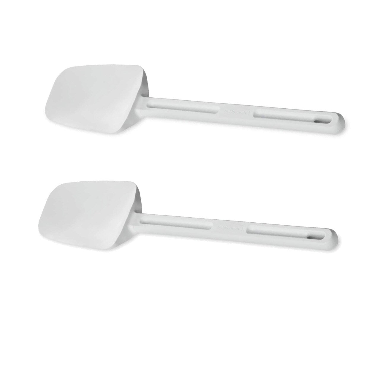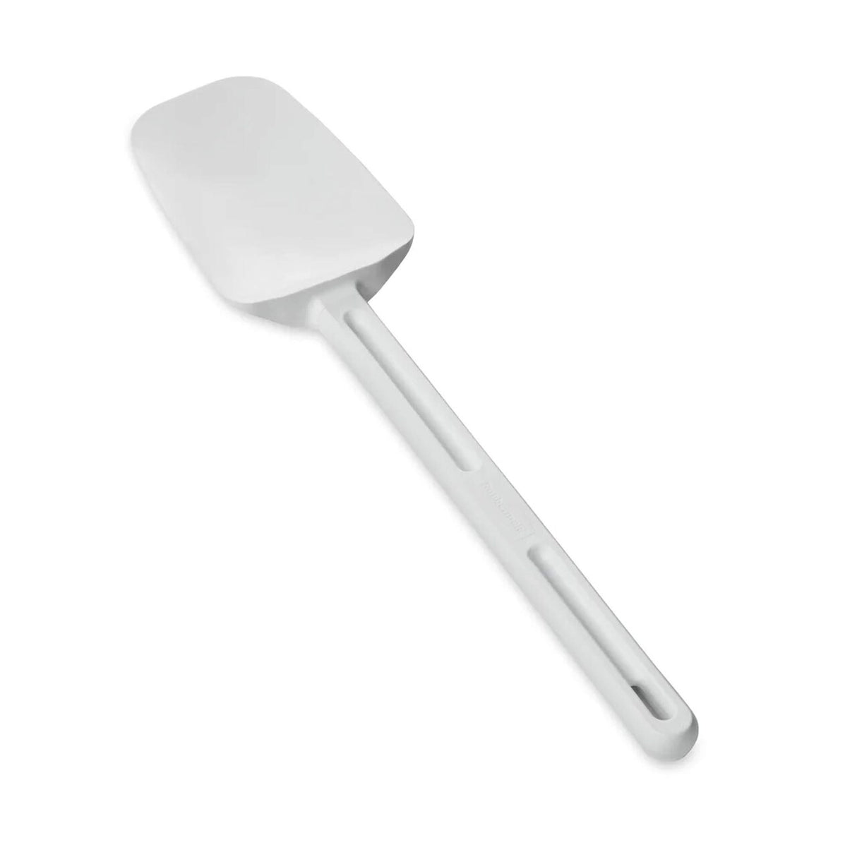 Part of the Clean-Rest™ series, this 16½" white spoon spatula features seamless molded construction for durability and easy cleaning, ideal for various baking and cooking tasks.