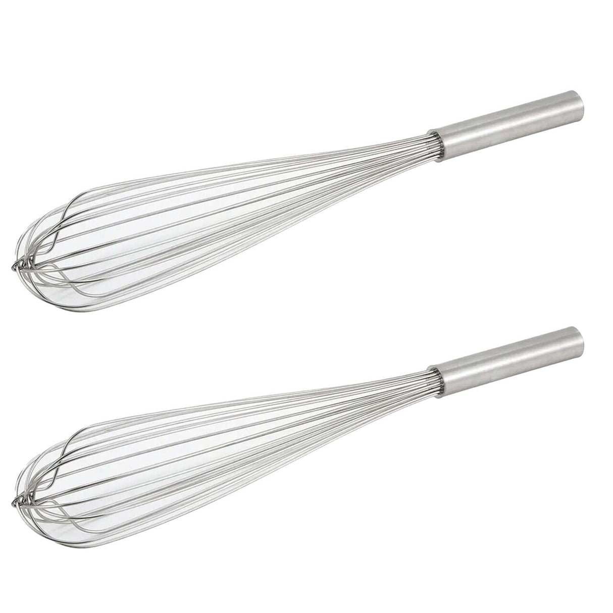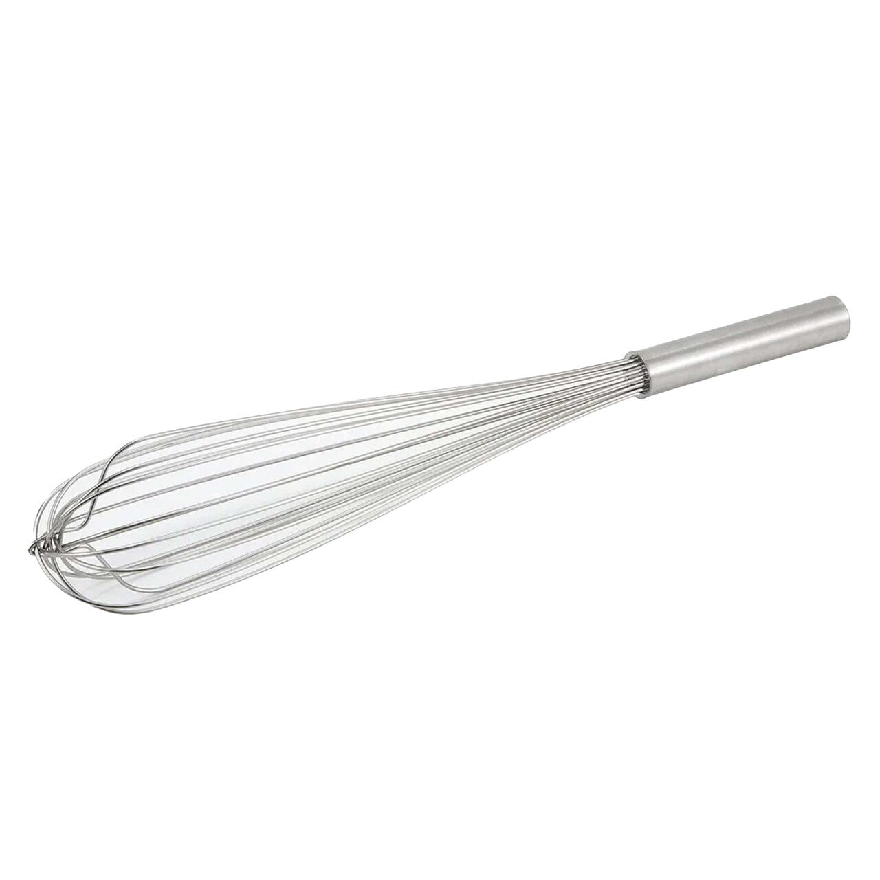 Perfect for smoothing batters and aerating eggs, the 12" stainless steel French whip offers extended reach and rigid performance for professional mixing tasks.