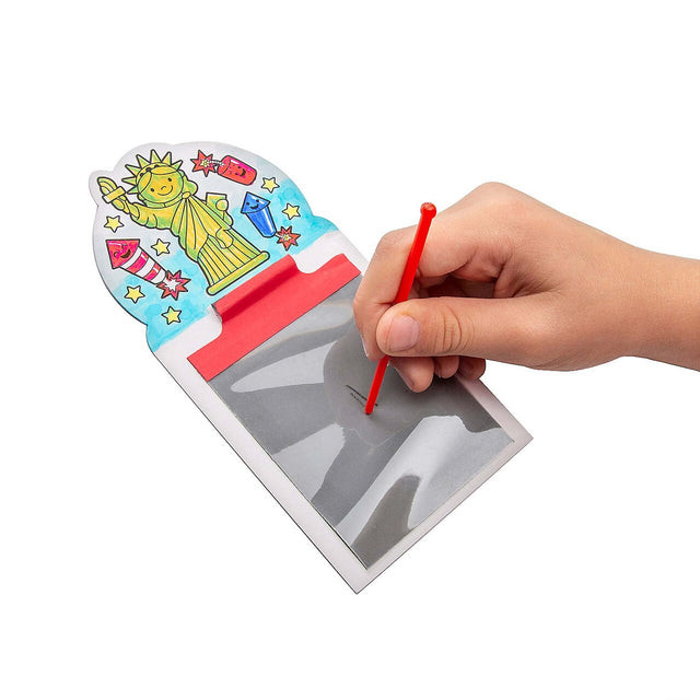 Celebrate creativity and American pride with these Color Your Own Patriotic Cardstock Magic Screens! Each screen showcases festive stars and stripes for kids to color and personalize. Once decorated, use the included scratch tool to reveal hidden designs, creating a magical interactive experience. These crafts are ideal for Independence Day, classroom projects, parades, and Memorial Day activities. A hands-on way to combine artistic expression with patriotic fun!