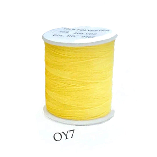 200 Yards of Orange or Yellow Polyester Thread on a small spool. Ideal for machine sewing, hand stitching, and embroidery. Strong, smooth, and colorfast fiber designed for reliable use in garments, crafts, and detail work.