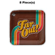 Bring the funk with these 8 Ct. “Far Out” 70s Party Square Dessert Plates! Perfect for retro-themed birthdays or disco nights, these 7" plates feature a groovy design with bold 'Far Out' text. Durable, disposable, and ready to serve up sweets with serious style.