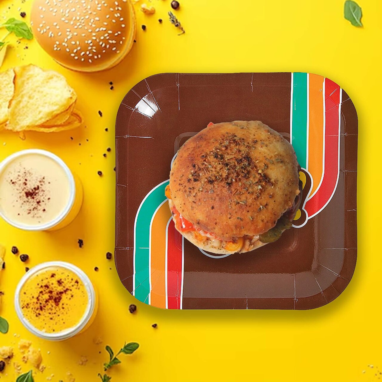 8 Ct. 70s Party Far Out Square Paper Dessert Plates 7" Retro Tableware