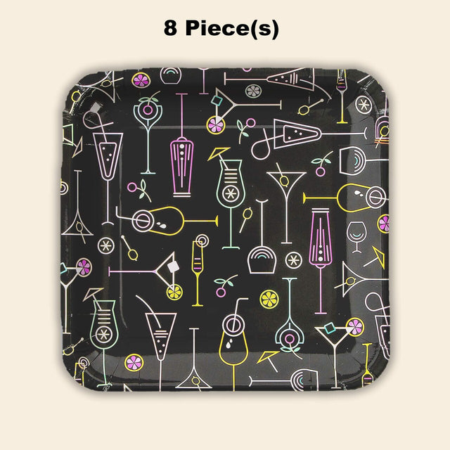 8 Ct. Cocktail Party Square Paper Dinner Plates Neon Drink Design