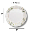 8 Ct. Eucalyptus Paper Dessert Plates 7-Inch Elegant Greenery Wedding or Shower Tableware