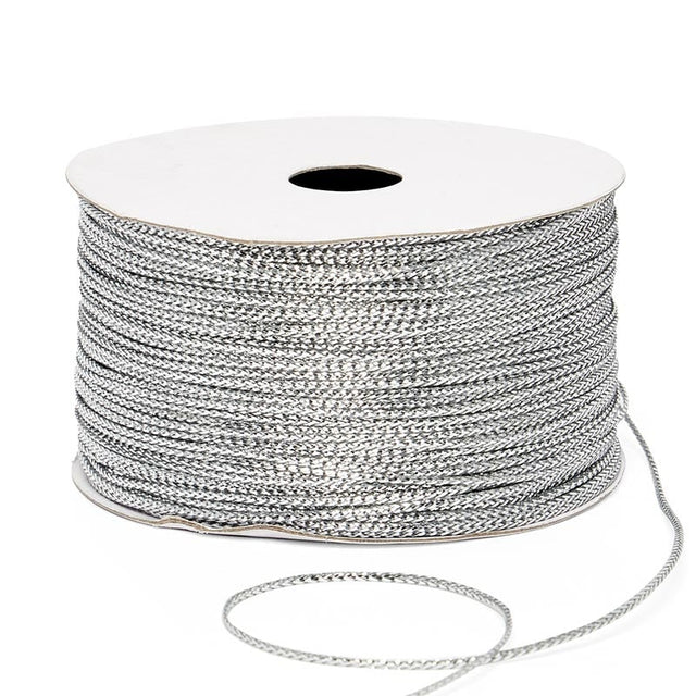 Add a beautiful finishing touch to your craft projects with metallic accents using this thin sturdy cord. It is 1 mm wide, easy to work with, and features a shiny surface wrapped around a cord. Use to finish or trim party décor, gifts, and craft projects.