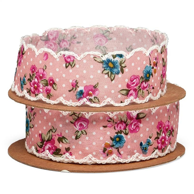 This beautiful shabby-chic vintage floral ribbon is a great way to add a classic look to your gifts. Choose from a variety of floral patterns printed on one side of this 1” ribbon. The cute white embroidered edges give this ribbon a scalloped look. Mix and match colors for a bow that really pops. Vintage floral ribbon is great for retail product presentation, gift giving, and crafts.