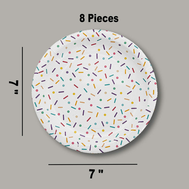 8 Ct. Ice Cream Party Sprinkles Paper Dessert Plates 7" Dessert Plates, Cute Ice Cream Birthday Tableware