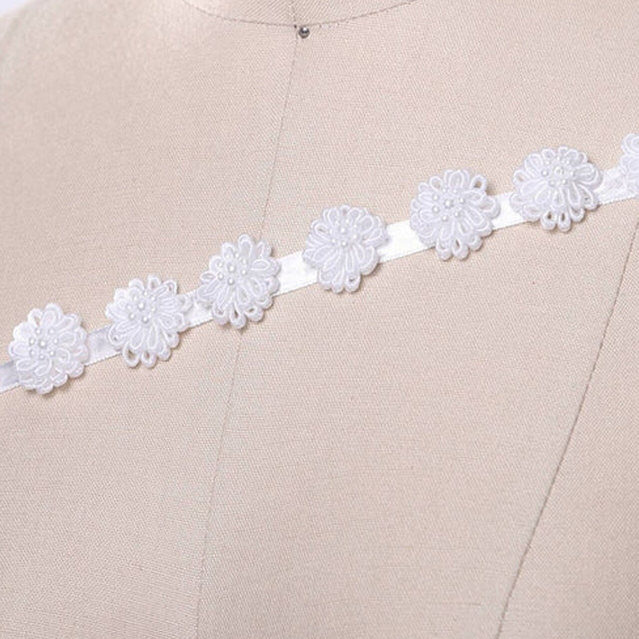 1 Yard 3D White Flower Ribbon Trim Firm Satin Narrow Floral Accent