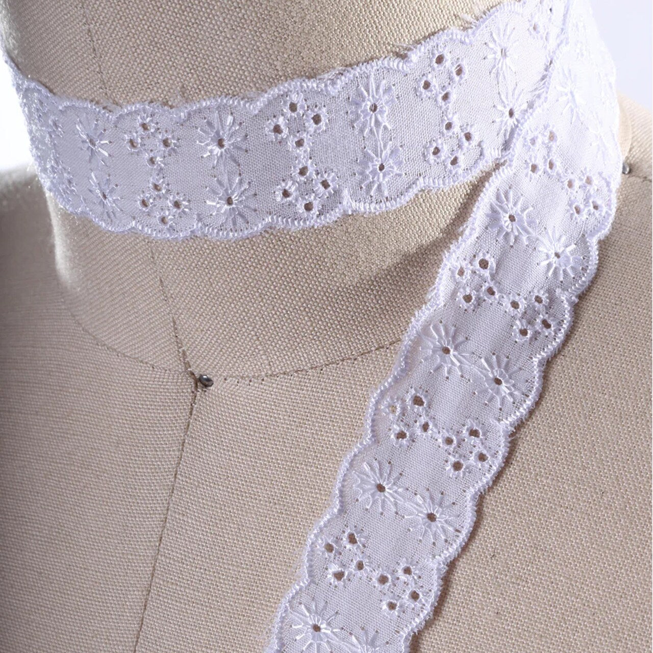 2 Yards Cotton Eyelet Ribbon Trim 1" Scalloped Lace for Clothing & Home Decor