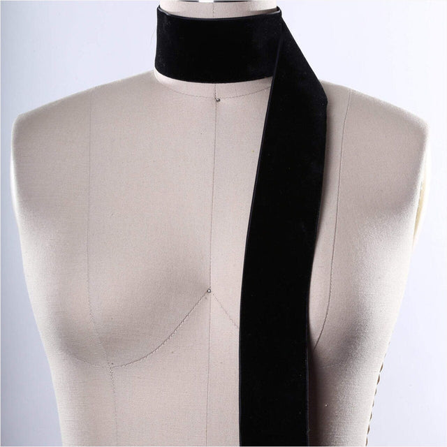 2 Yards of luxurious black single sided velvet ribbon available in 5/8" width. Made from thick, non-stretch material, it’s perfect for edging gowns, formalwear, and creating elegant chokers or accessories. Rich texture and high durability make it ideal for sewing, costume design, and crafts. Ships in one continuous piece for multi-yard orders.