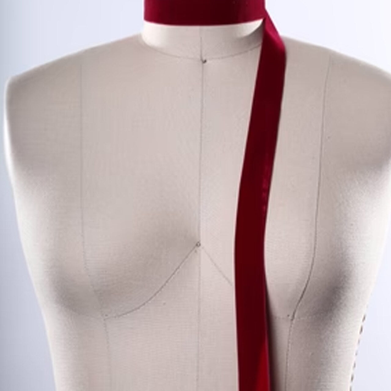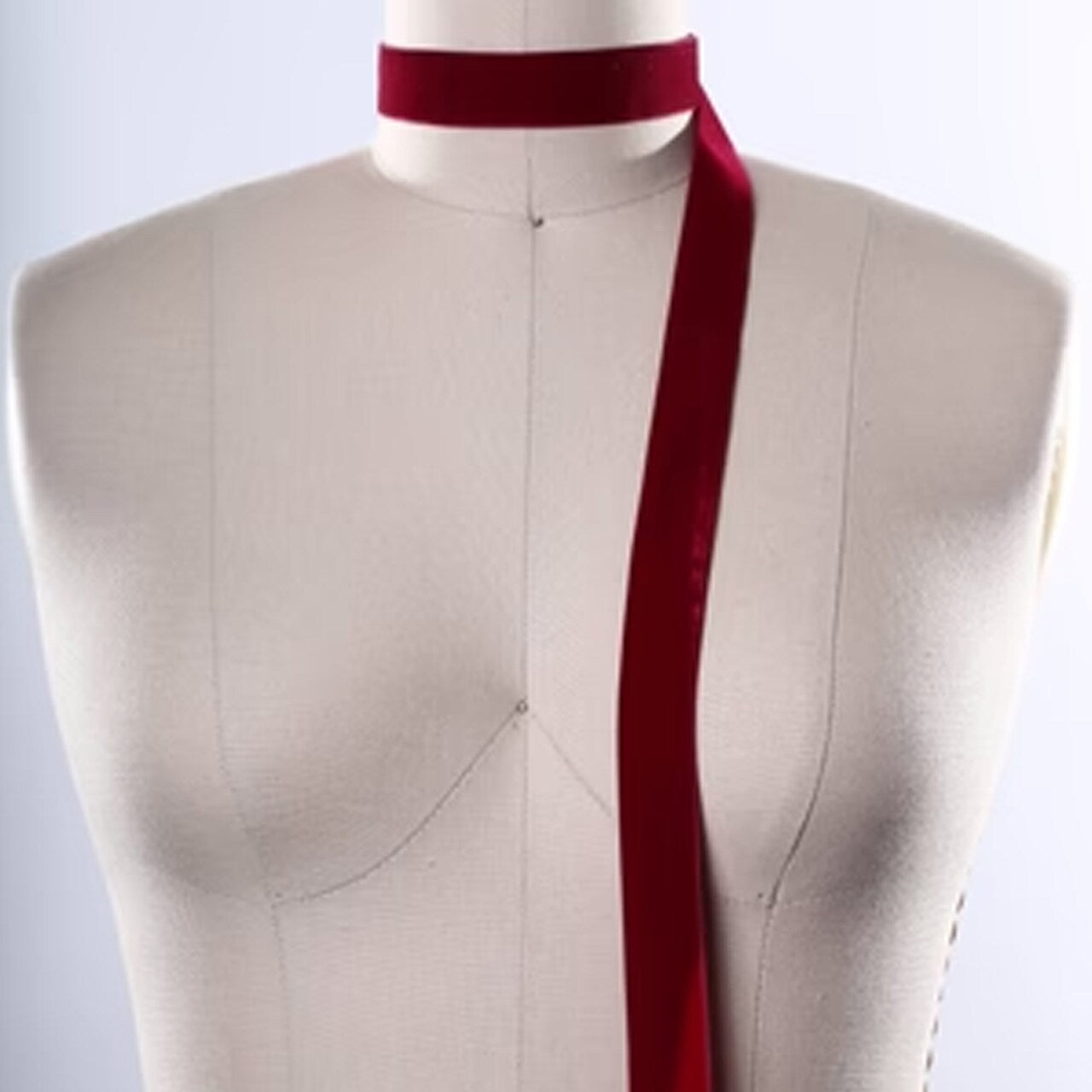 1 Yard of wine-toned burgundy velvet ribbon trim with a soft, luxurious finish. This single side, non-stretch ribbon is ideal for bow tying, sleeve edges, waistbands, panels, and accessories. Ships in one continuous piece if multiple yards are ordered.