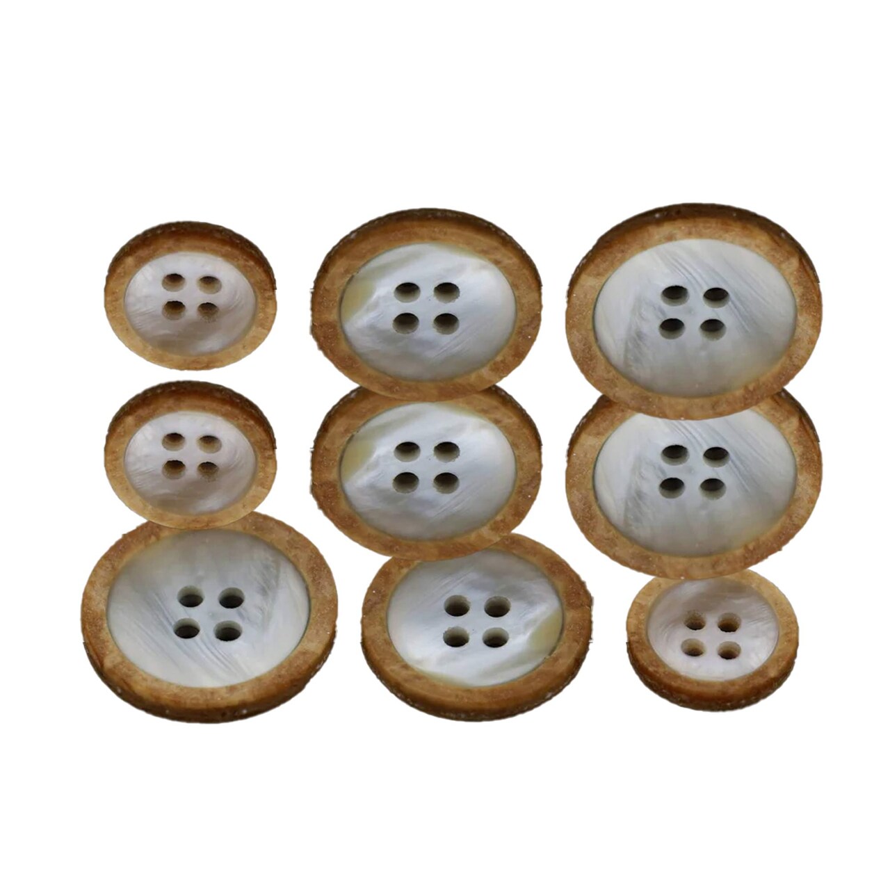 These faux shell buttons with outer faux wood edges offer the perfect blend of rustic charm and classic style. The set includes 12 four-hole Wood buttons in mixed sizes 20mm —featuring a glossy shell-like center surrounded by a wood-textured rim. Ideal for shirts, cardigans, jackets, or crafting, they bring a natural yet refined touch to any sewing project.