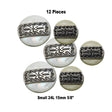 Add a touch of elegance to your sewing and craft projects with these ivory pearly shell buttons featuring a stunning silver starburst metal center. Made with a combination of plastic and metal, each shank button offers both beauty and durability. Available in two sizes, these buttons are perfect for garments, accessories, and decorative crafts.