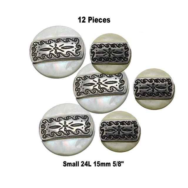 24L (15mm / 5/8") Ivory Pearl Shell Buttons Starburst Silver Center Shank Style Craft Button