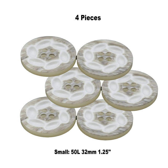 50L (32mm / 1.25") Beige Shell Look Buttons Swirl Ivory Pattern Large Four Hole Coat Button