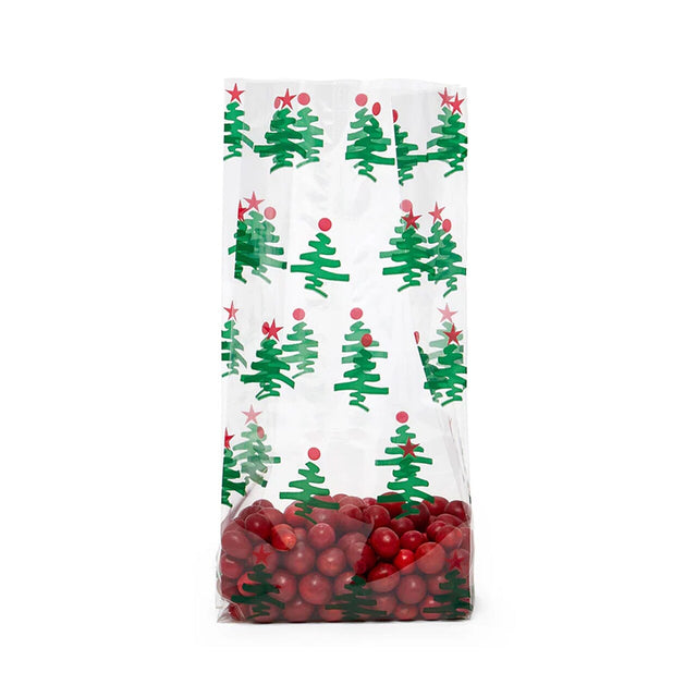 5” x 3” x 11.5” Holiday Cello Bags with Festive Patterns - Little Green Trees / 100 Count is backordered and will ship as soon as it is back in stock.