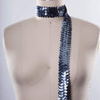Add glitz and glamour to your creations with this 1.5-inch gray steel blue stretch sequin trim featuring a glossy gunmetal finish. Crafted with loose flat sequins sewn into shimmering clusters, this trim is perfect for dancewear, competition, ice skating costumes, and chic accessories like headbands, bracelets, and belts. Easy to sew onto most fabrics for dazzling effect.