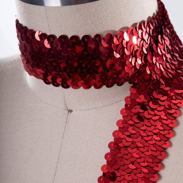 Add dazzling glitz and glamour to your projects with this 1.5-inch red stretch sequin trim. Crafted from loose flat sequins sewn into shimmering clusters, it easily sews onto most fabrics and materials. Perfect for 1920’s style headbands, dancewear, competition and ice skating costumes, as well as chic accessories like bracelets, belts, and more.