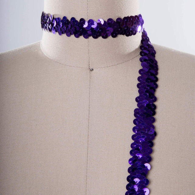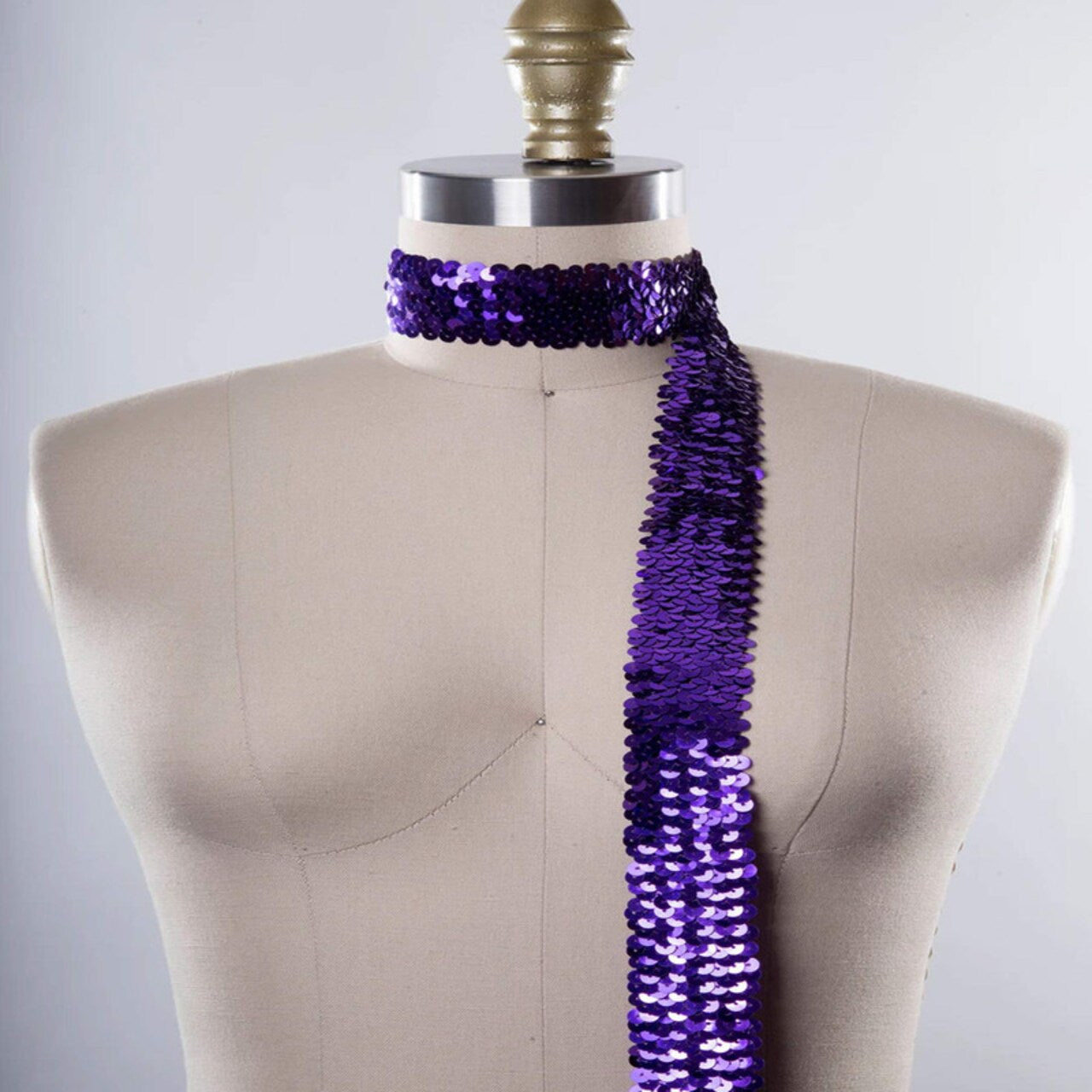 1 Yard Elastic Sequin Trim Purple Sequin Sash Trim 1.5"