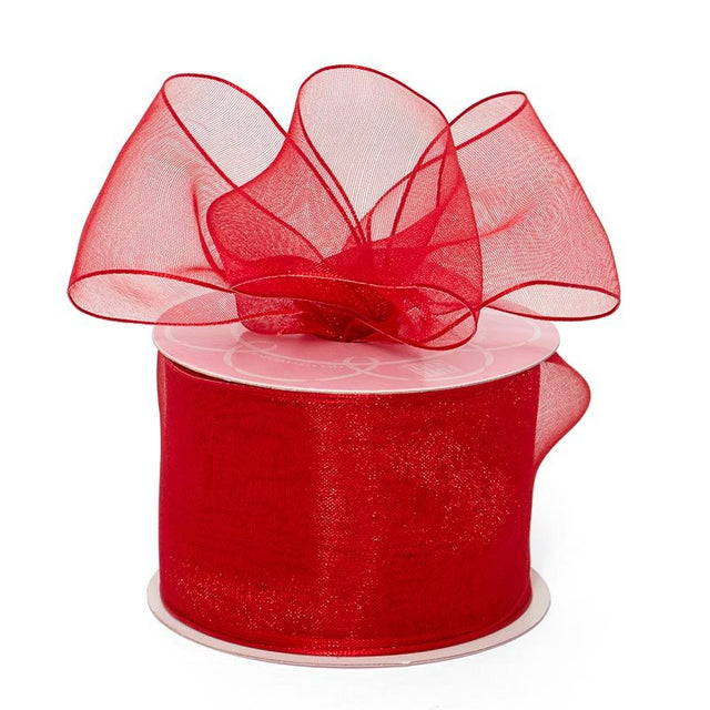Sheer Organza Wired Ribbon 7/8 '' X 25 yd Red Color 1 / roll