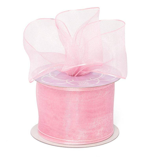 Sheer Organza Wired Ribbon 1 1/2 '' X 25 yd Pink Color 1 / roll