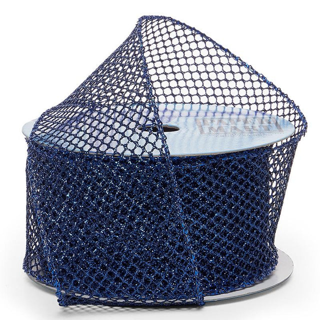 Plain Mesh Wired Ribbon 2 1/2 '' X 10 yd Navy Metallic (Glitter) Color 1 / roll