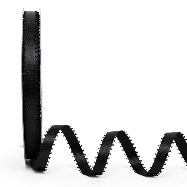 Picot Edge Satin Ribbon 3/16 '' X 50 yd Black Color 1 / roll
