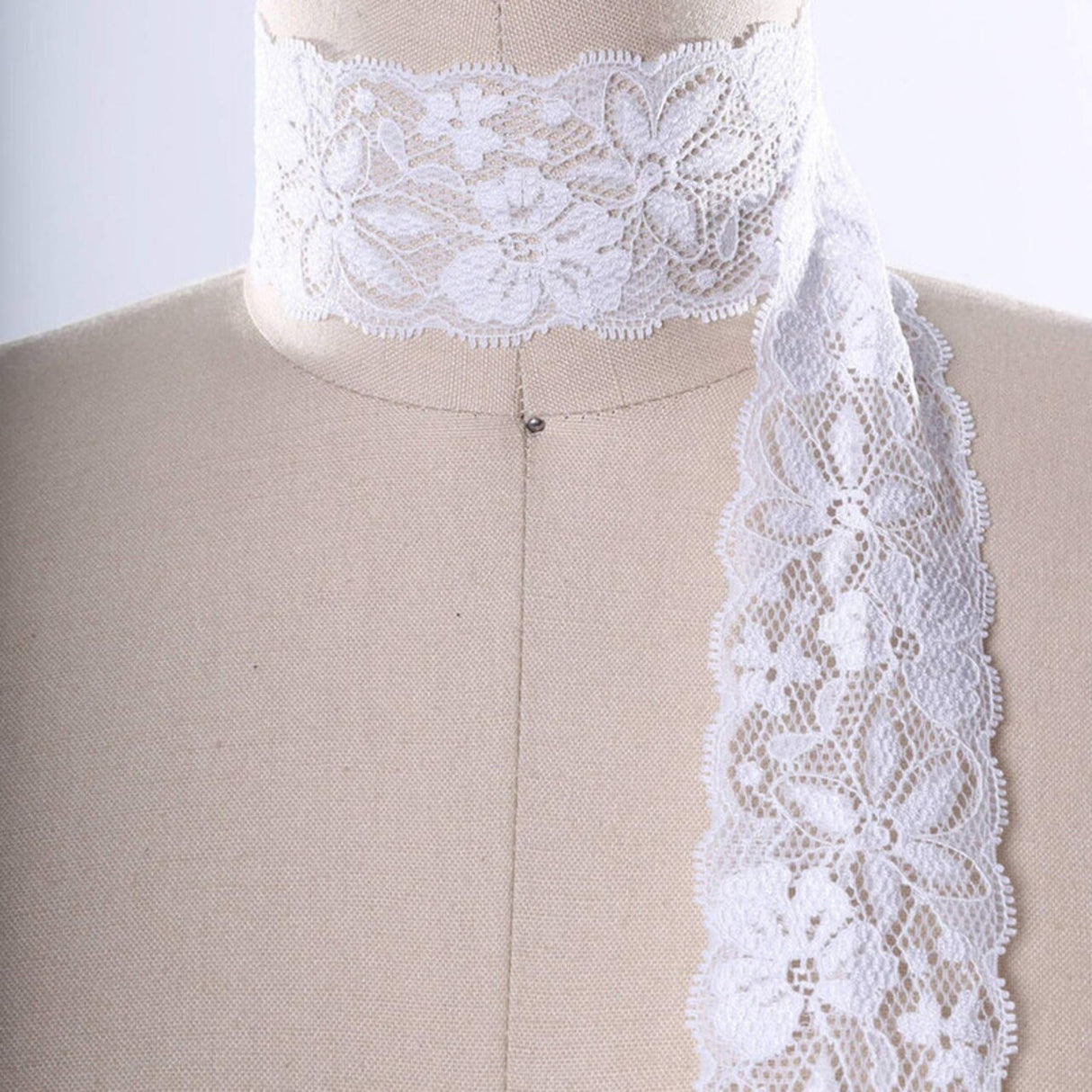 White Lily Stretch Lace 2" Elastic Scalloped Floral Trim for Lingerie, Overlays & Crafts