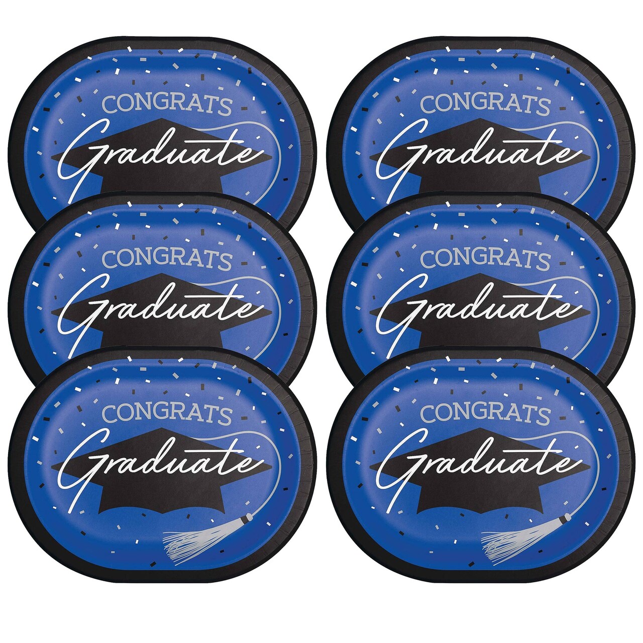 Creative Converting School Spirit Blue Graduation Oval Paper Platters – 24ct