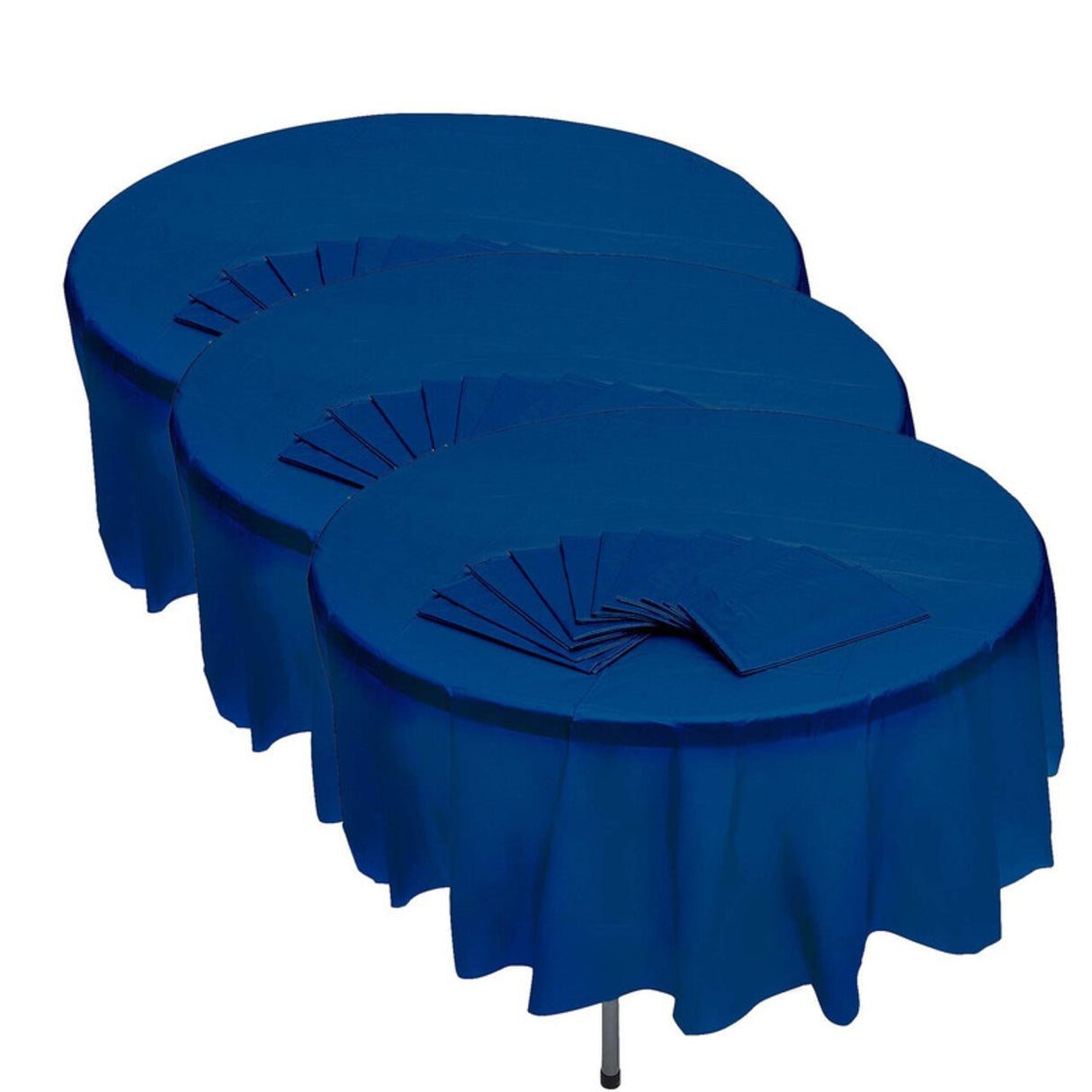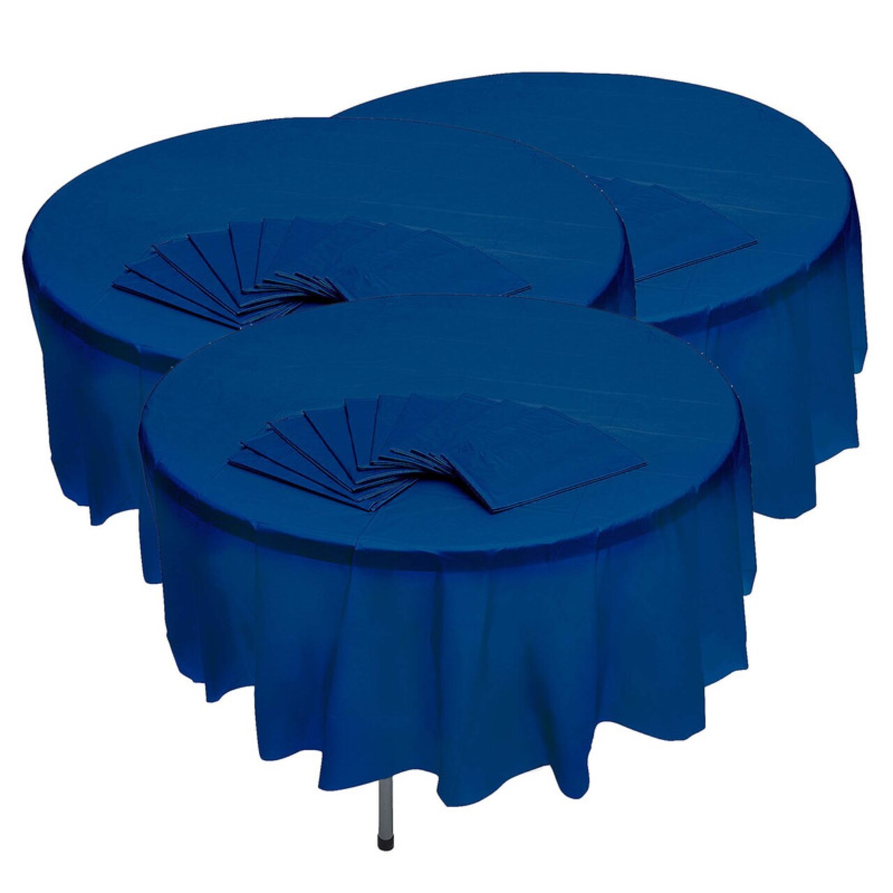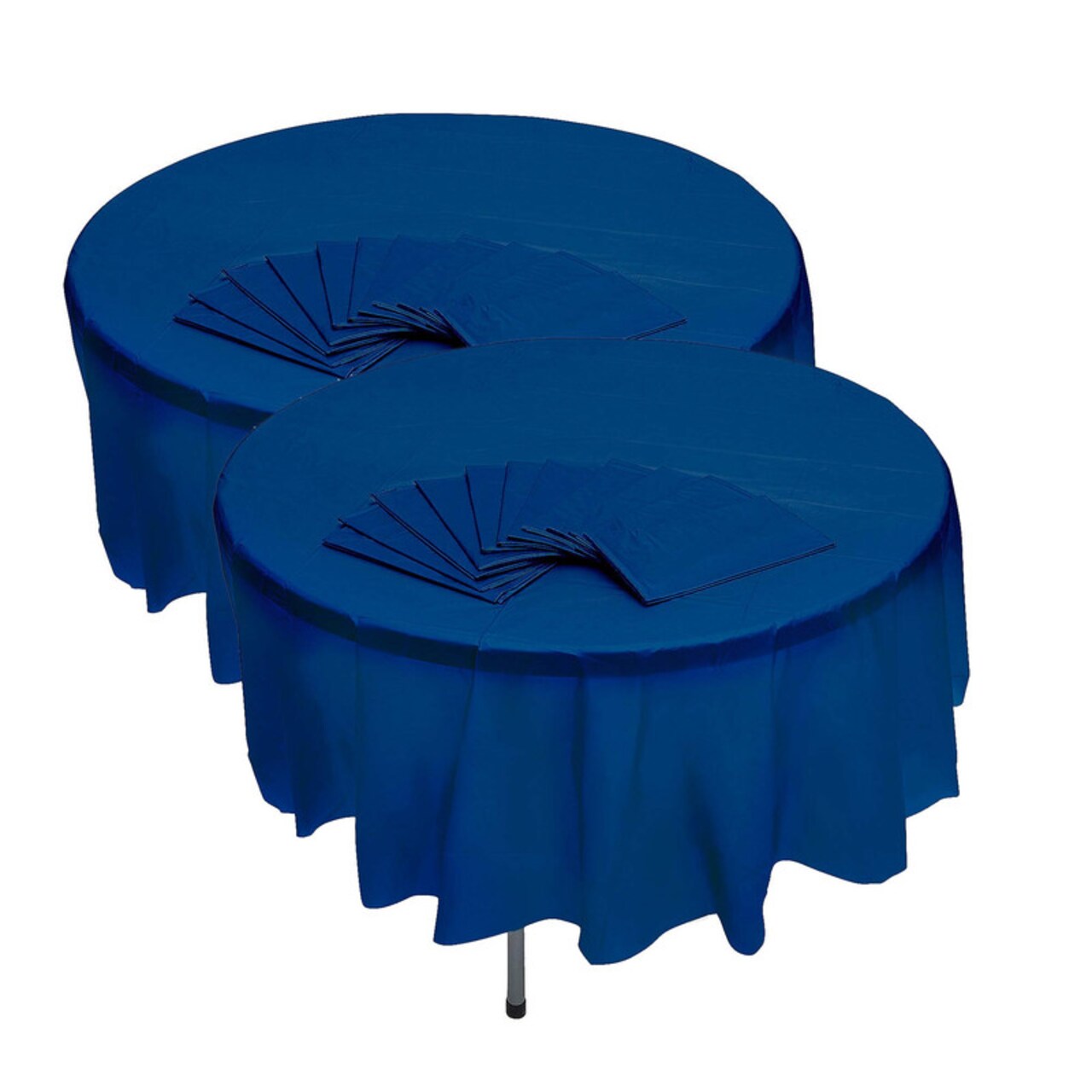12-Pack Navy Blue 82'' Round Disposable Plastic Tablecloths – Banquet Style
